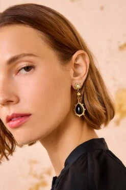 ULLA JOHNSON Kaja Mix Texture Stone Drop Earring – Black Onyx