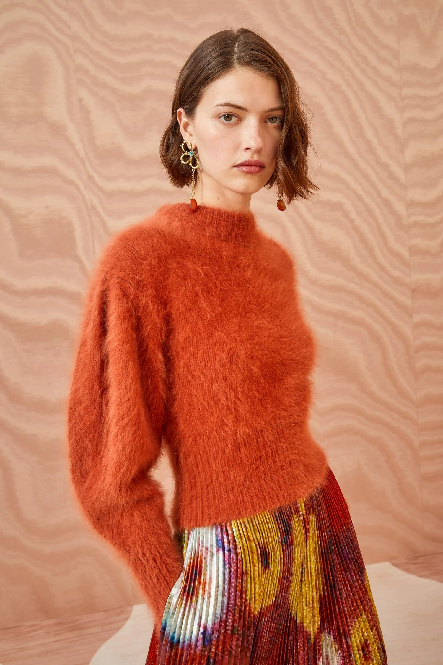 The Emira Pullover is crafted from ethically sourced angora-blend yarn. This gorgeous red knit is plush and warm, and is finished with a simple crewneck and signature puff sleeves.