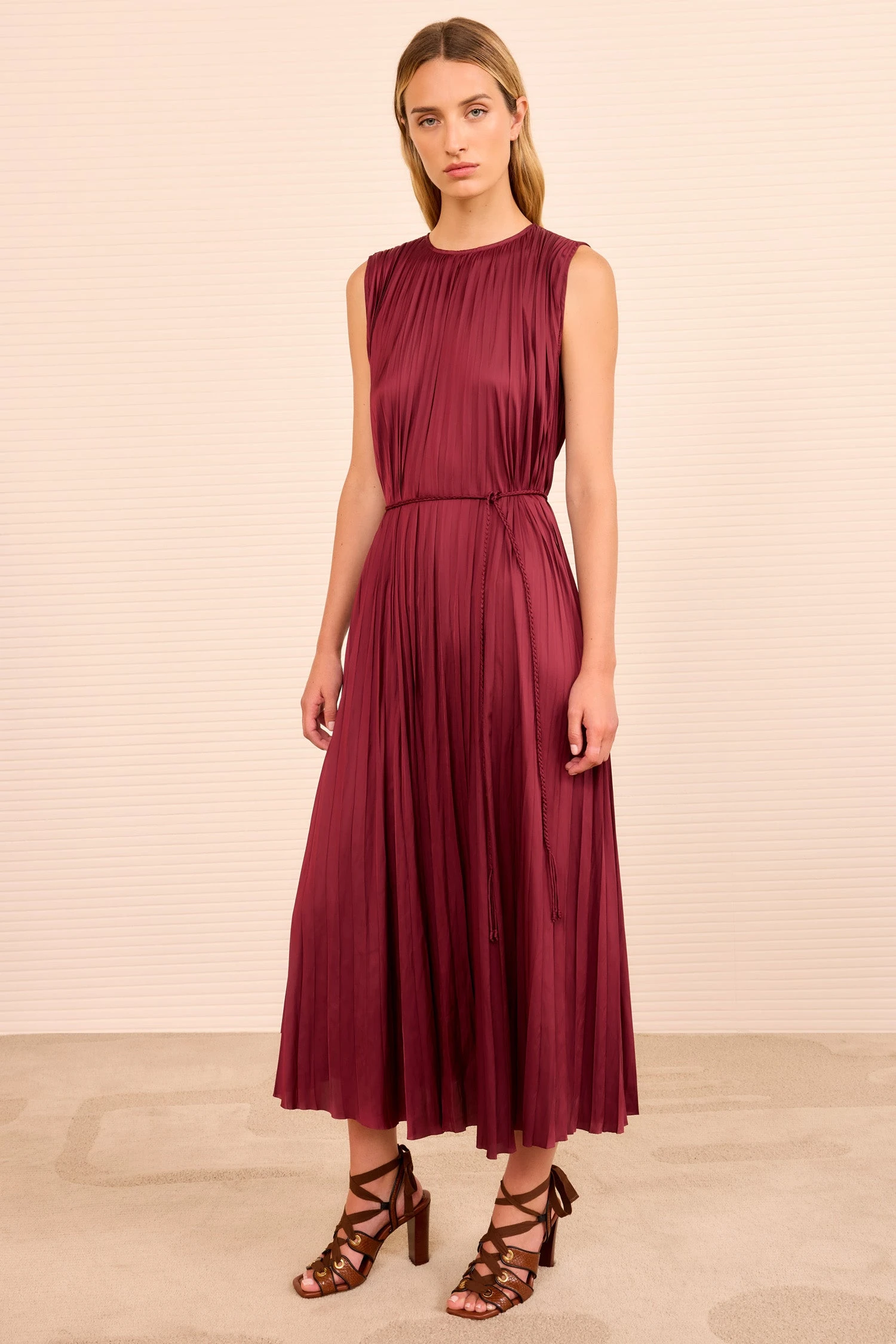 SKU: DWXSY 7520463159392 Categories: Designer Clothing, Dresses Tags: Best seller, Color: burgundy, Color: Red, Event: Guest Of, Event: Workwear, Fallfav, Hide-from-employees, Holiday2026, Jewel tone, New years, Plisse Satin, PS26, PS26L2, Ready to wear, Season:P26, Silk, Sleeve: Sleeveless, Style:PS260140