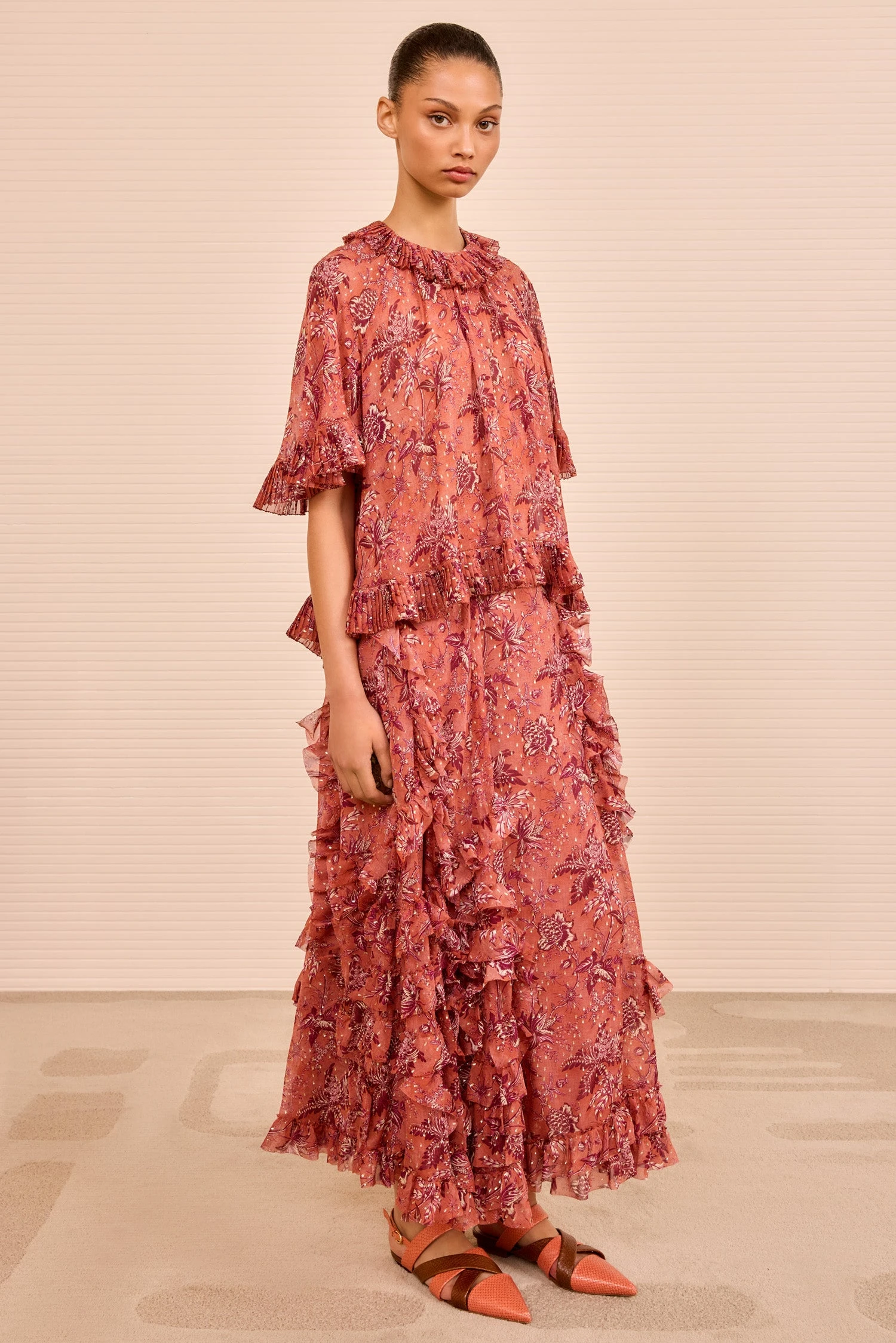 Pair with our Adele Cascading Ruffle Skirt to complete the look.
