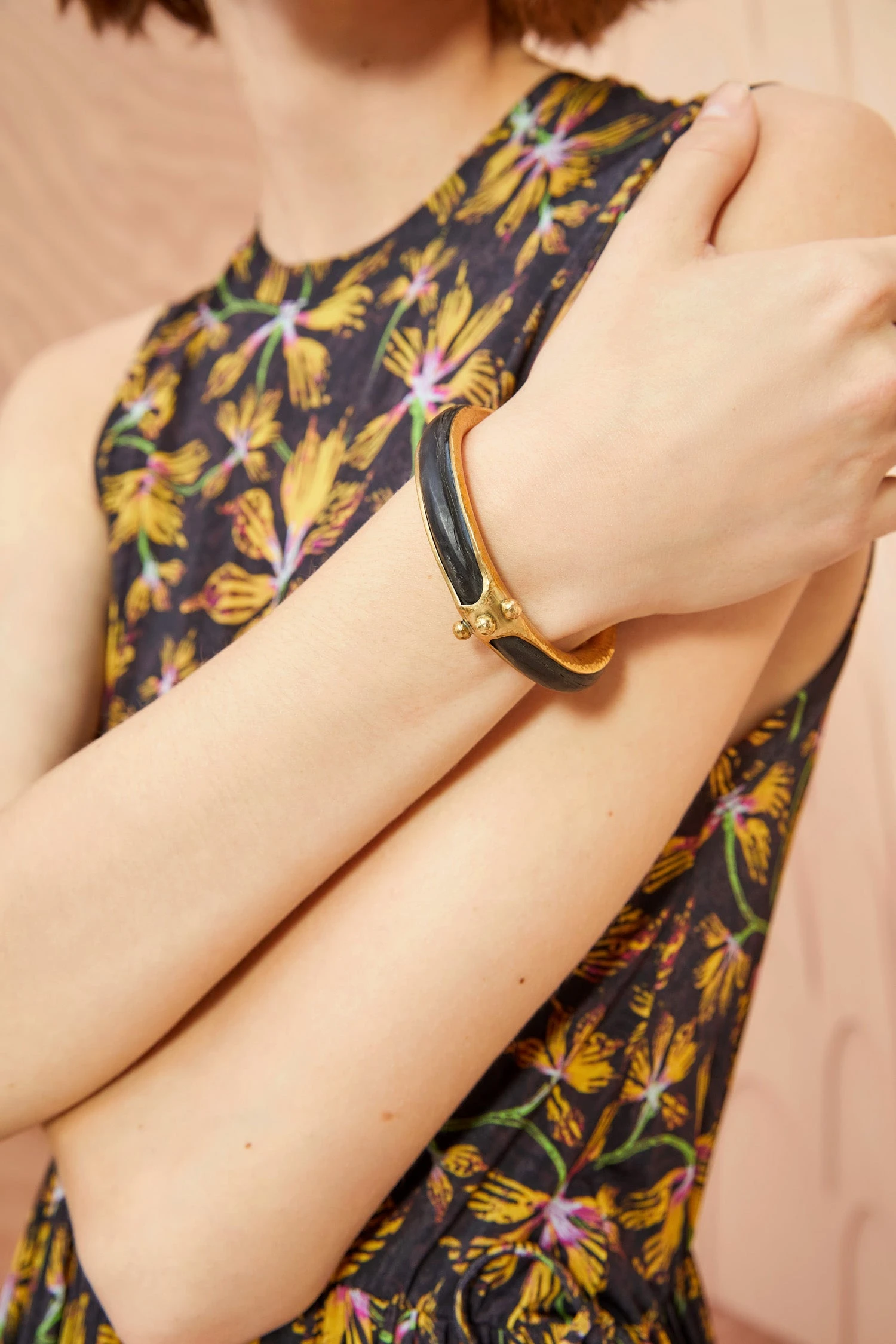 As featured in Look 9 of our Autumn/Winter ’23 Runway Show, the Horn Cuff is crafted from black horn that has been inlaid in our signature hand-hammered brass—a meticulous technique that allows the horn to keep its shape.