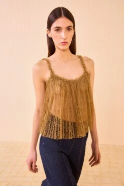 ULLA JOHNSON Liese Silk Ruffle Neckline Long Sleeve Blouse – Desert Rose