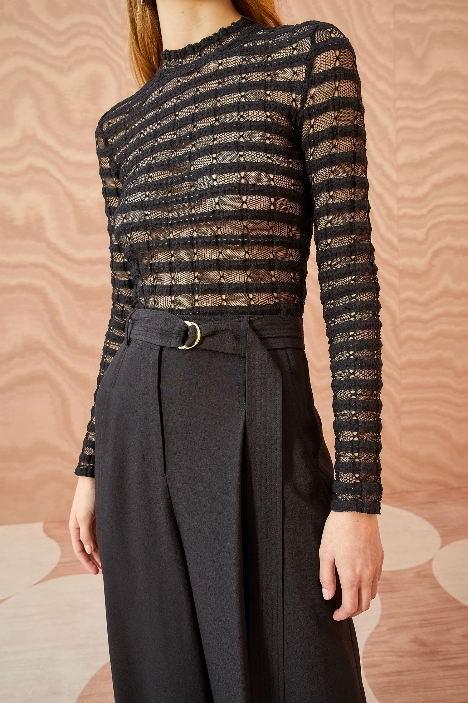 The Lydia Pant is made from luxurious satin back crepe which features a beautiful, flowing drape. These black trousers are designed in a high-waist wide-leg silhouette and are finished with pockets and a removable belt.