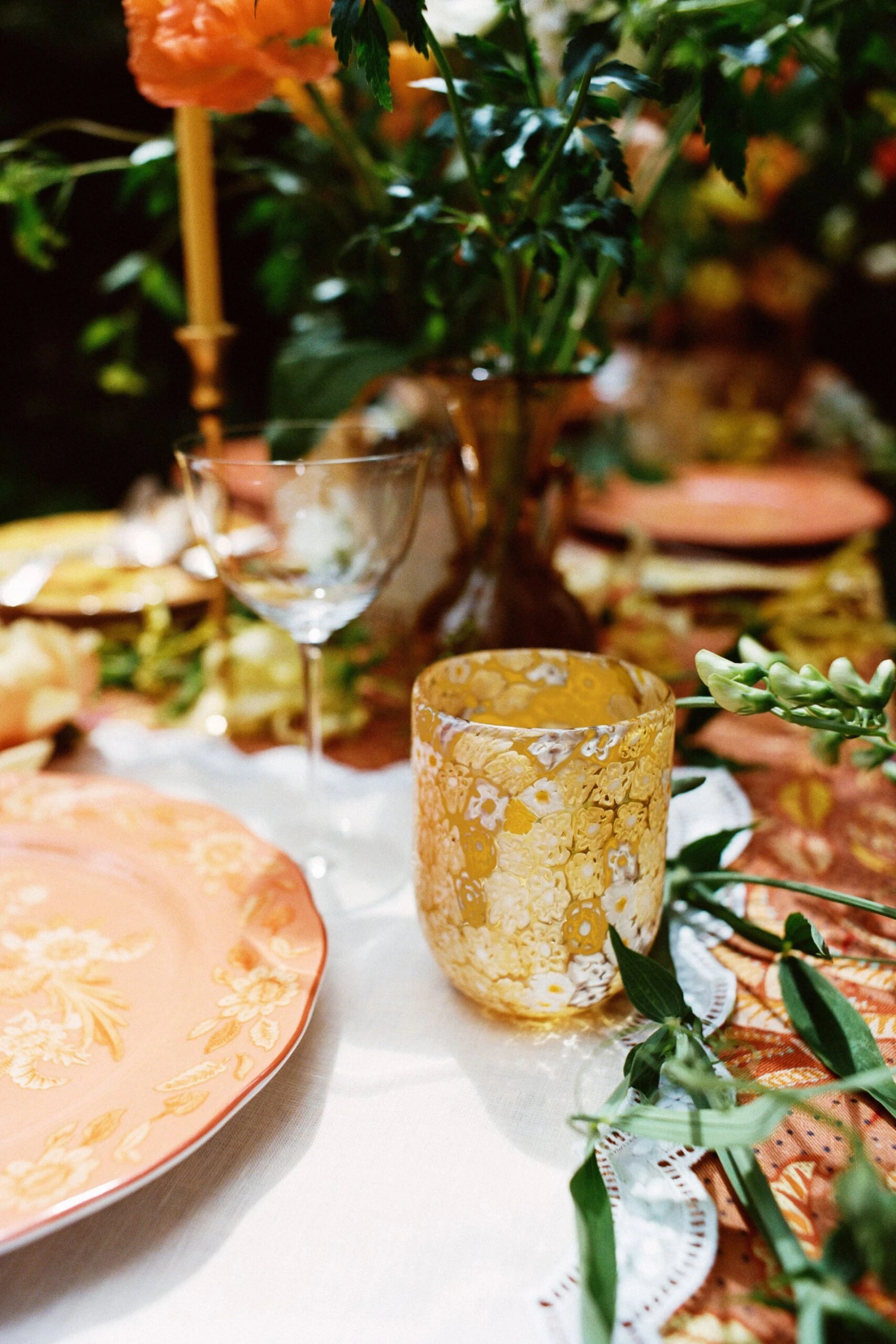 Inspired by the joyful spirit of summer, the Ulla Johnson x Cabana capsule sets the stage for unforgettable alfresco dining experiences. Crafted by creative Venetian glassmakers Laguna B, the Murrine tumbler is hand-blown from the finest quality Murano glass and features a vibrant, kaleidoscopic floral pattern. The capsule marks Ulla’s first foray into home with a tabletop collection of elegant linens, hand-painted plates, Murano glassware and home pieces, all of which beautifully reflect the merging of our two worlds.Â