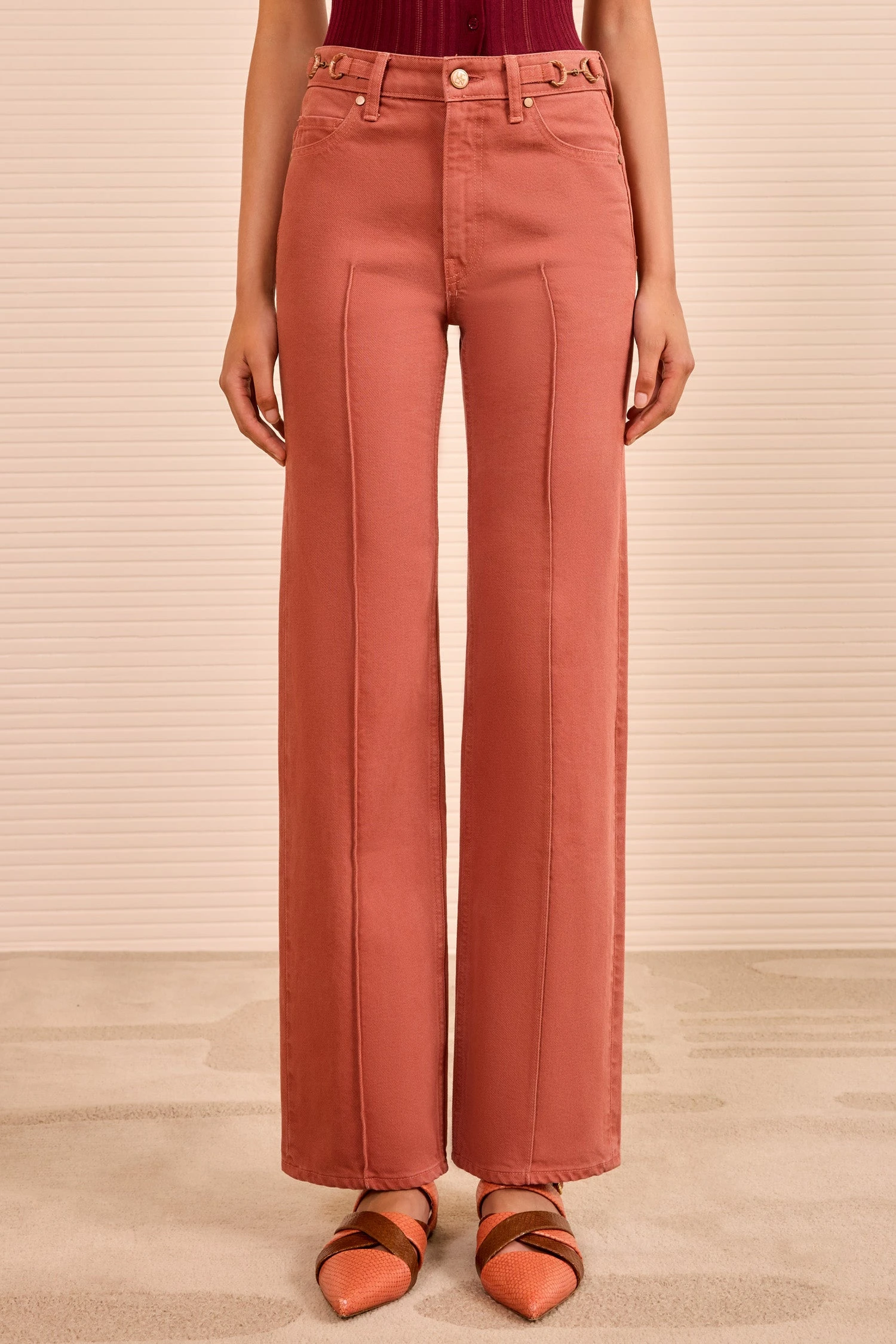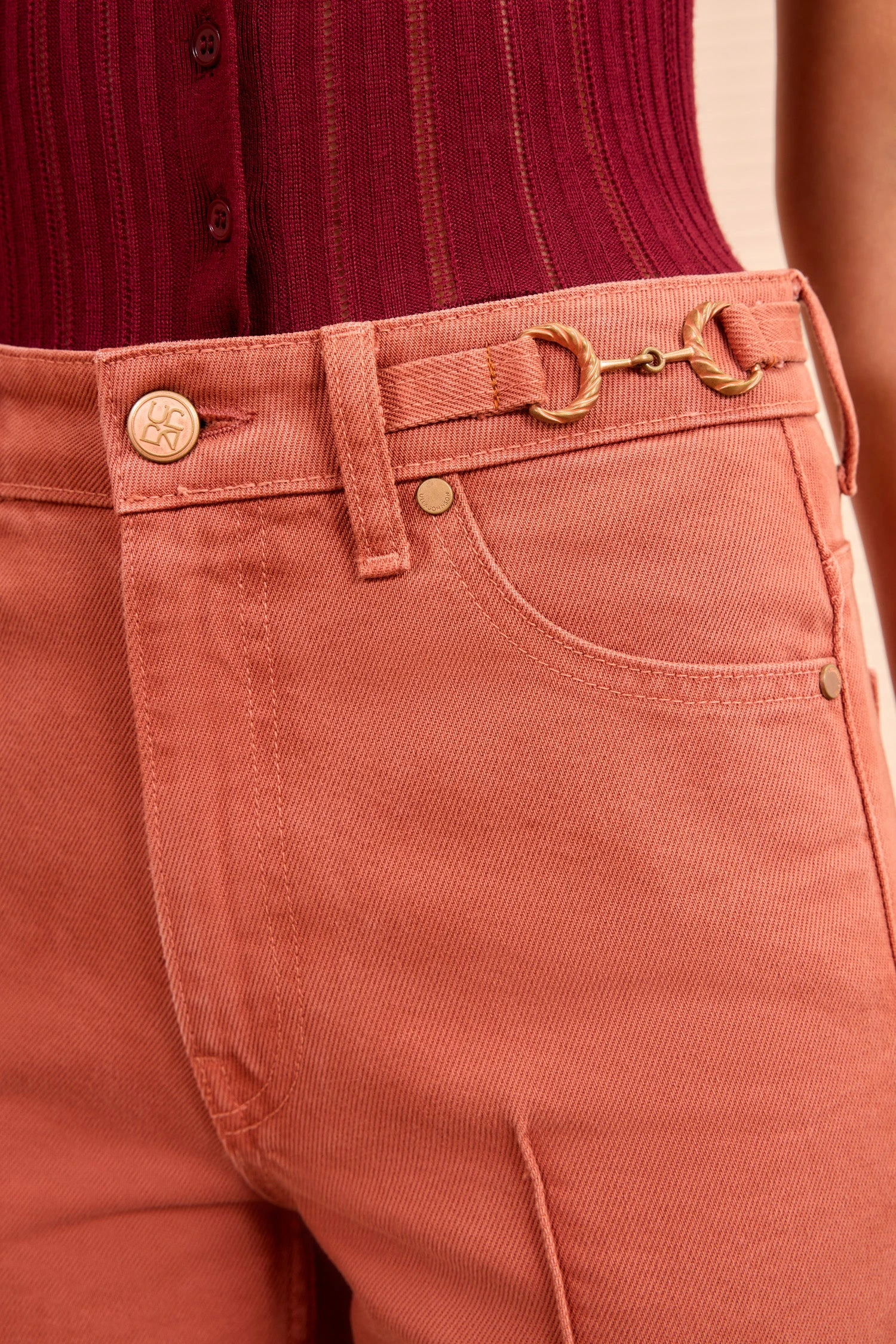 The Agatha Jean is the newest addition to the Ulla Johnson denim lineup. The perfect everyday silhouette, it’s handmade in Los Angeles in our dusty pink Garden Rose wash with a straight leg and pintucks down each side for an elevated finish.Â