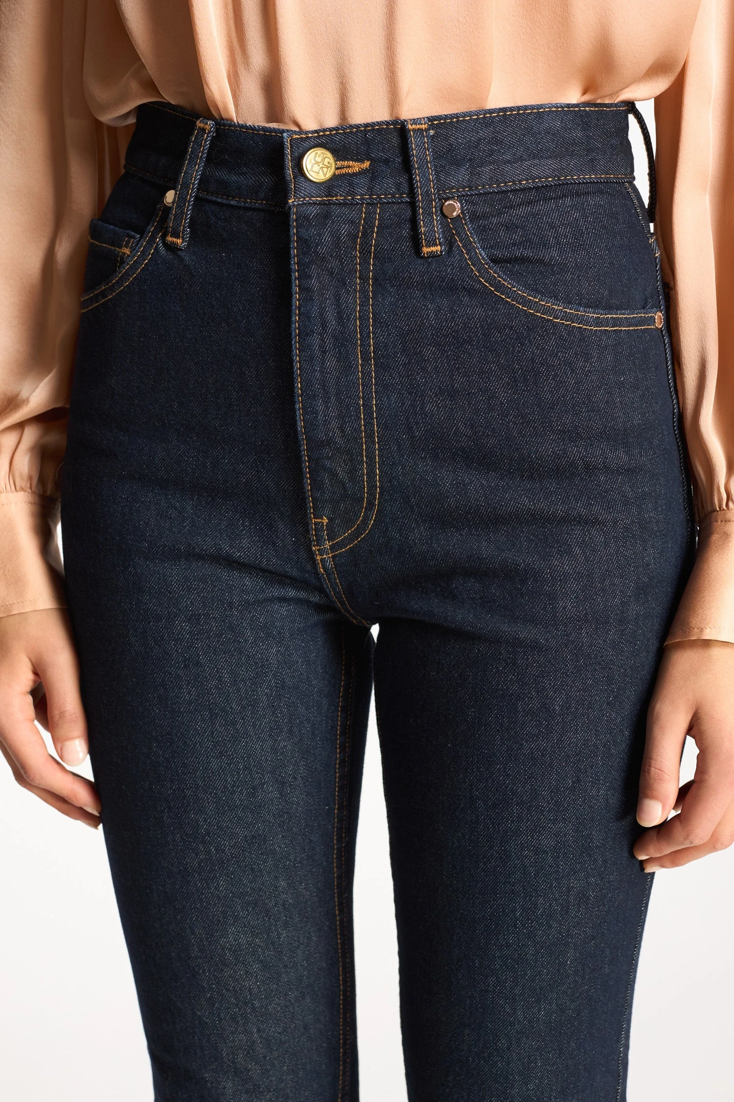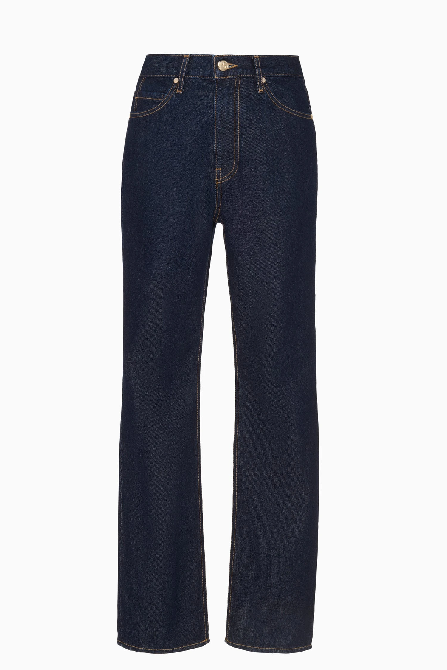 The Agnes Jean is one of our iconic styles of our inaugural denim collection, handmade in Los Angeles. This denim jean silhouette features a straight leg, high-waist and elegant, clean lines, arriving in deeply-hued Tigris. This jean is cut in non-stretch denim with a leather logo-embossed waistband patch and a hand-hammered ring attached to the back belt loop. Each style is designed to perfectly complement the silhouettes of every ready-to-wear collection.