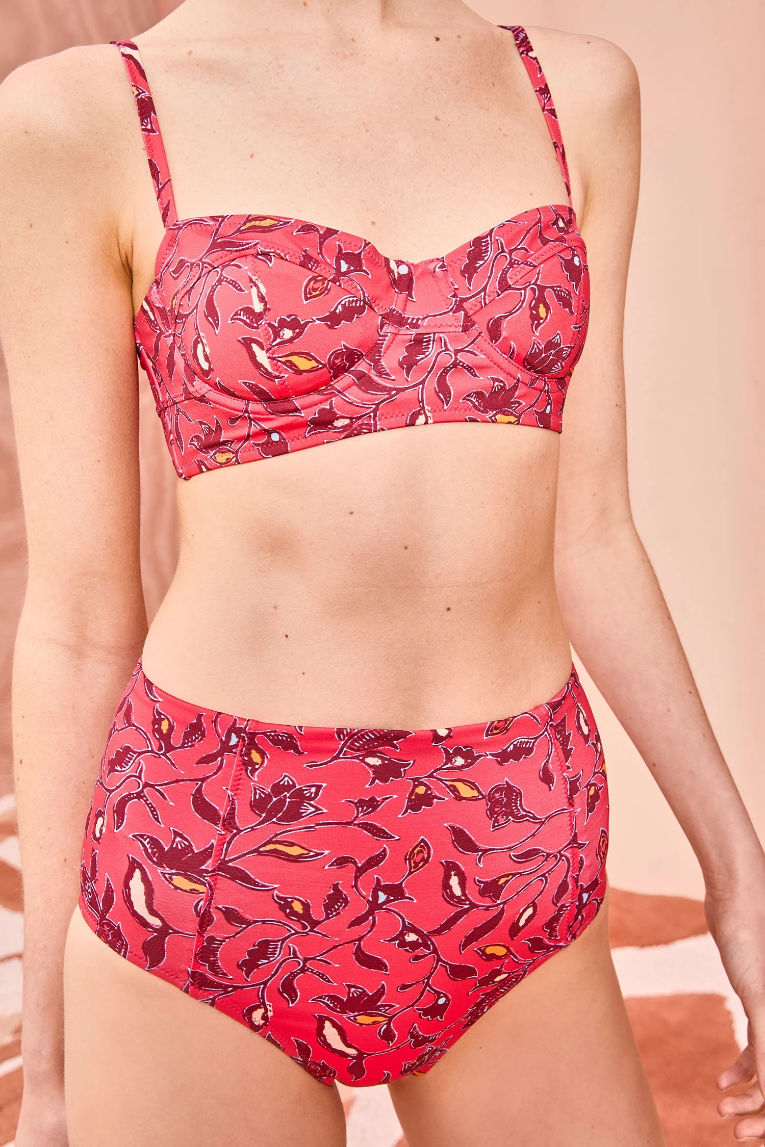 The Zahara Bikini Bottom is a high-waisted silhouette featuring flattering princess seams. Cut in a fuchsia floral print, this style pairs perfectly with the Zahara Bikini Top in Poppy.